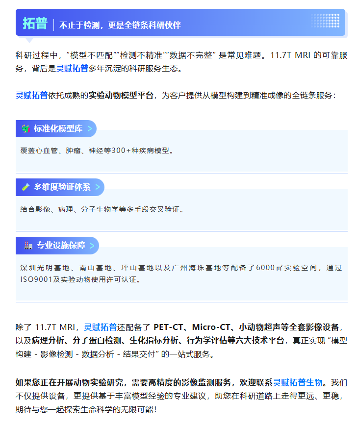 11.7T 超高场MRI×百种成熟实验动物模型,灵赋拓普全链条服务